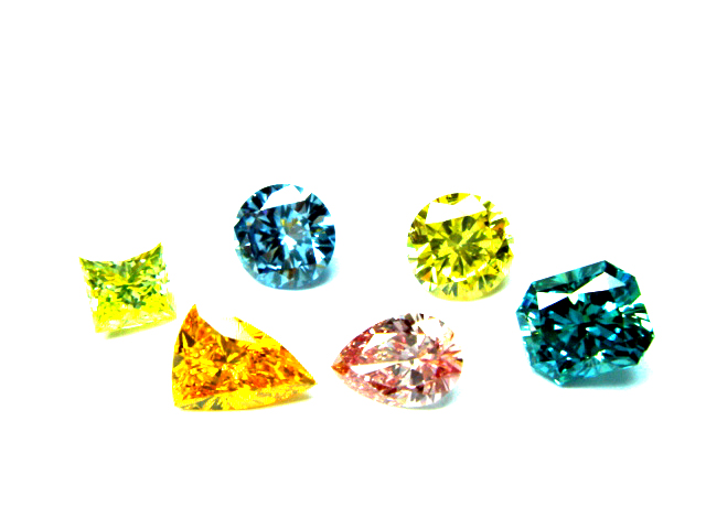 上の写真は、実際にアントワープのマーケットで見た合成のファンシーカラーダイヤモンド(0.2カラットサイズ)です。