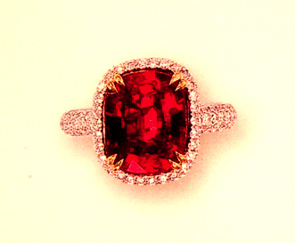 姿形が良いために標準のプロポーションの5〜6カラットサイズの大きさがあります。写真では良く分かりませんが、ピジョンブラッドと呼ぶに相応しい濃さ、赤さ、透明度を備えているルビーです。