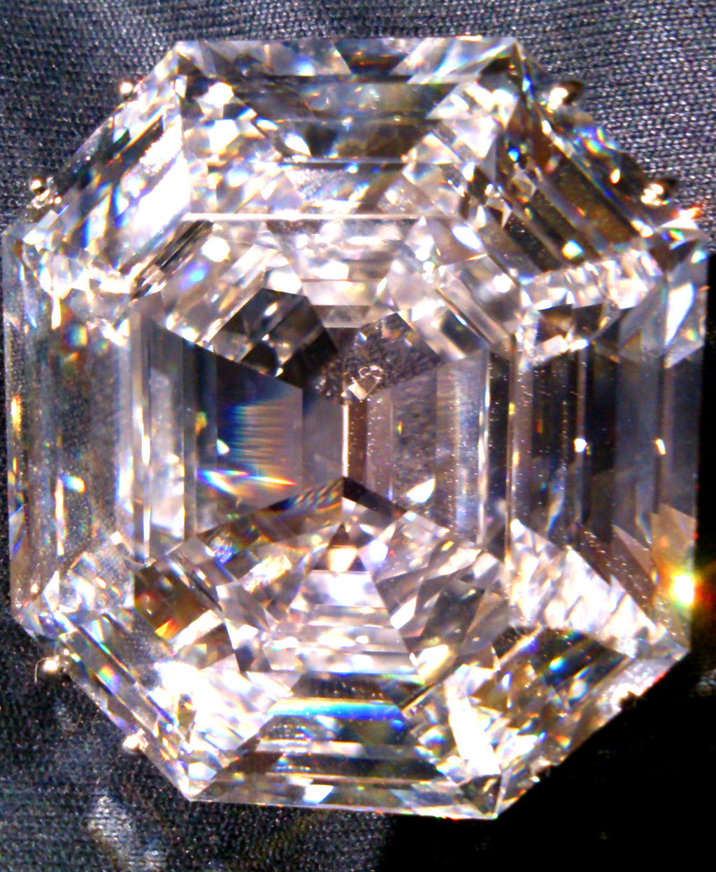 ショーピースは世界最大(100.57cts)のDカラー、フローレスでオクタゴンシェイプのStara Of Americaです。